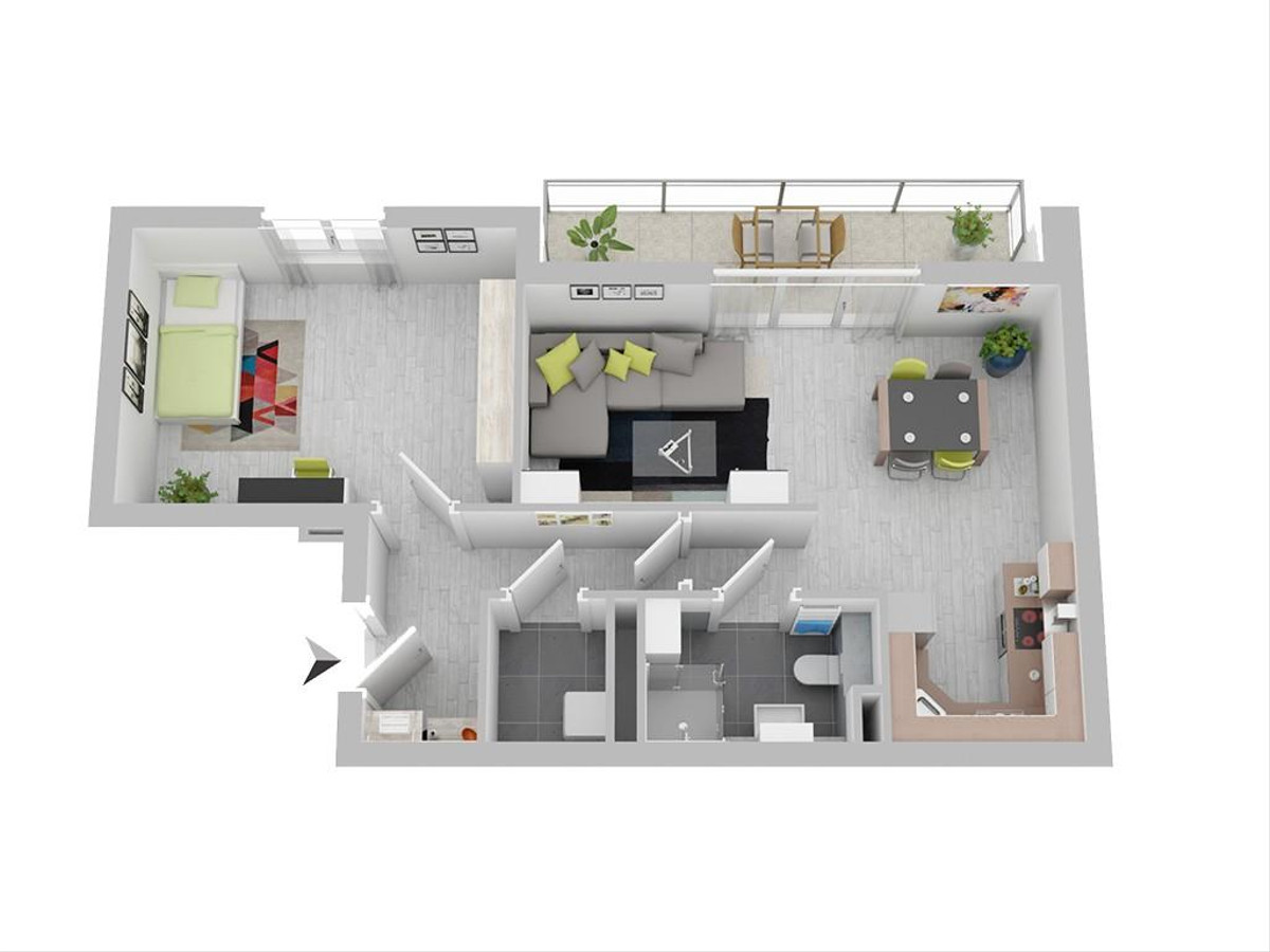 Beim Betreten der Wohnung gelangen Sie zunächst in einen einladenden Flurbereich, von dem aus sich alle Räume erschließen. Bereits hier zeigt sich der moderne Charakter der ca. 59 m² großen 2-Zimmer- Wohnung (WE 1.30), die sich im 3. Obergeschoss des ersten Gebäudes im neuen Kampnagel Quartier in Bad Oldesloe befindet.