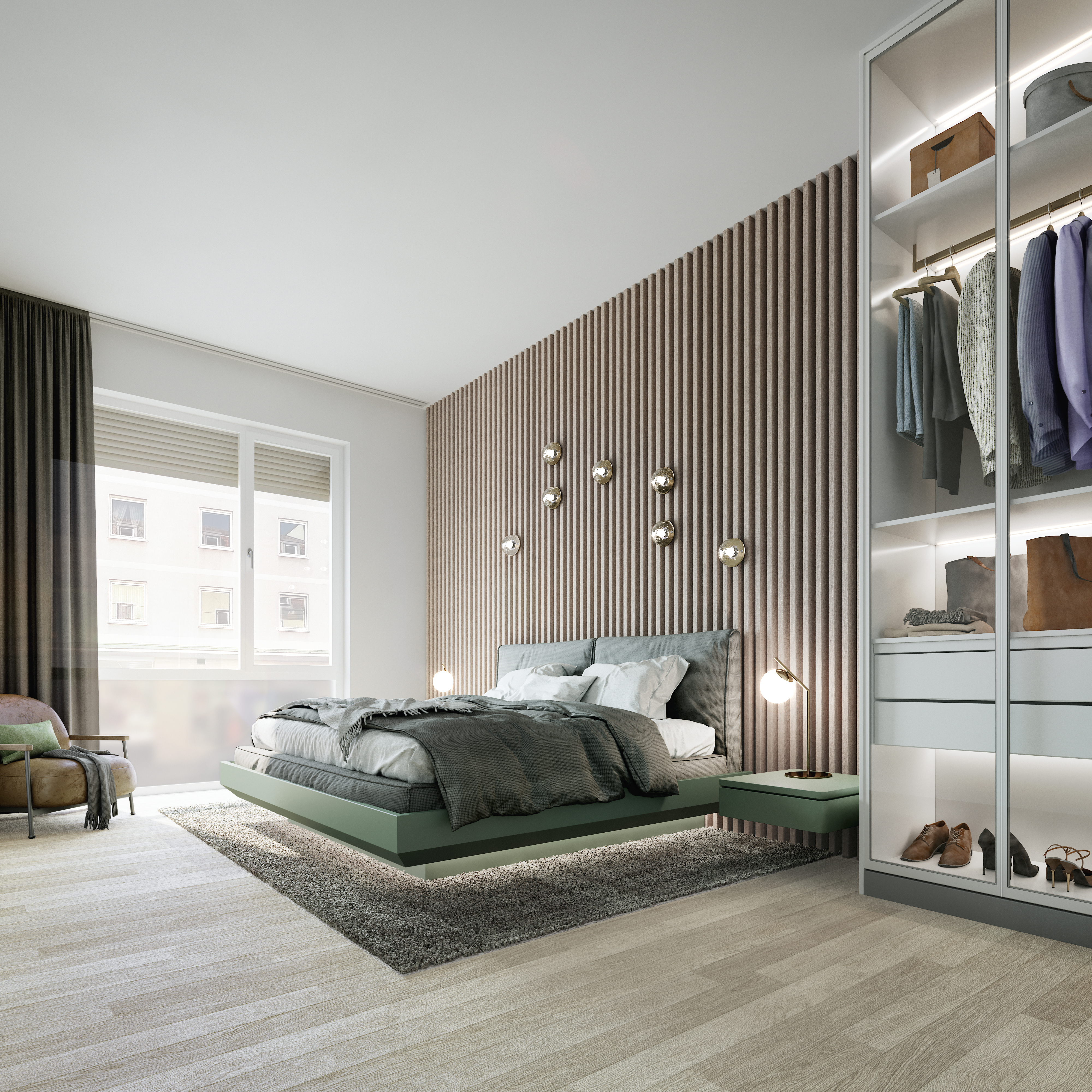 Ein besonderes Lichtkonzept in Teilbereichen des Projekts, Holz-Alu-Fensterrahmen, Türgriffe aus Edelstahl und attraktive Spindeltreppen bzw. offene, geradläufige Treppen aus Stahl mit Naturholzstufen in den Maisonettewohnungen sind nur ein paar der werthaltigen Ausstattungsmerkmale, die den Wohnkomfort ausmachen. Auch technisch überzeugt die Ausstattung aller Wohnungen: Mit Smarthome, einer modernen Steuerung von Heizung, Jalousien, Licht, Zugang, Paketbox etc., hat man über ein Terminal in der Wohnung und über eine App ständige Kontrolle.