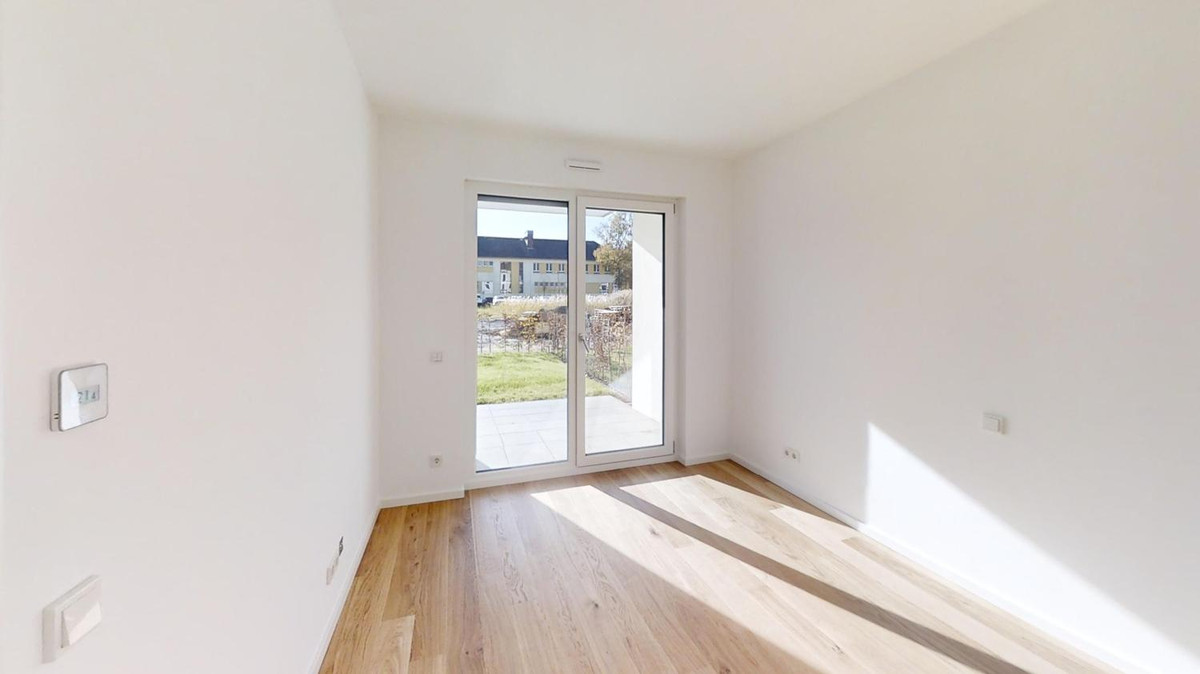 Das großzügige Wohn- und Esszimmer mit integrierter Küchenzeile sowie das Schlafzimmer sind zur ruhigen Gartenseite ausgerichtet. Ein besonderes Highlight stellt der rund 50 m² große, private Gartenbereich dar – ein rares Merkmal, das die Wohnqualität steigert und die Nachfrage deutlich erhöht. Zur Wohnung gehört ein PKW-Außenstellplatz mit Vorbereitung für E-Mobilität, direkt am Hauseingang.