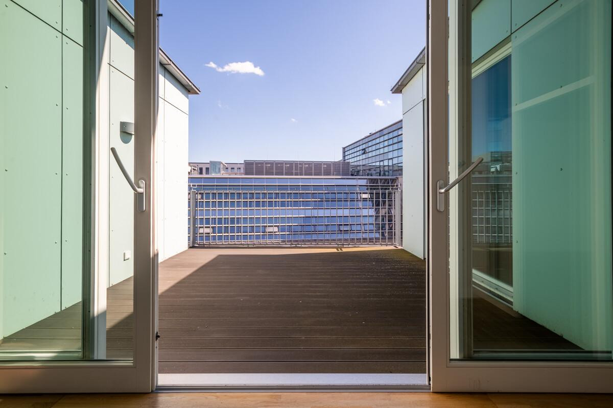Die beiden Schlafzimmer liegen ruhig zum Innenhof und bieten so einen erholsamen Ausgleich zum urbanen Leben. Parkettböden, großformatige Fliesen, bodentiefe Fenster und präzise Details unterstreichen den hohen Anspruch an Qualität und Design.