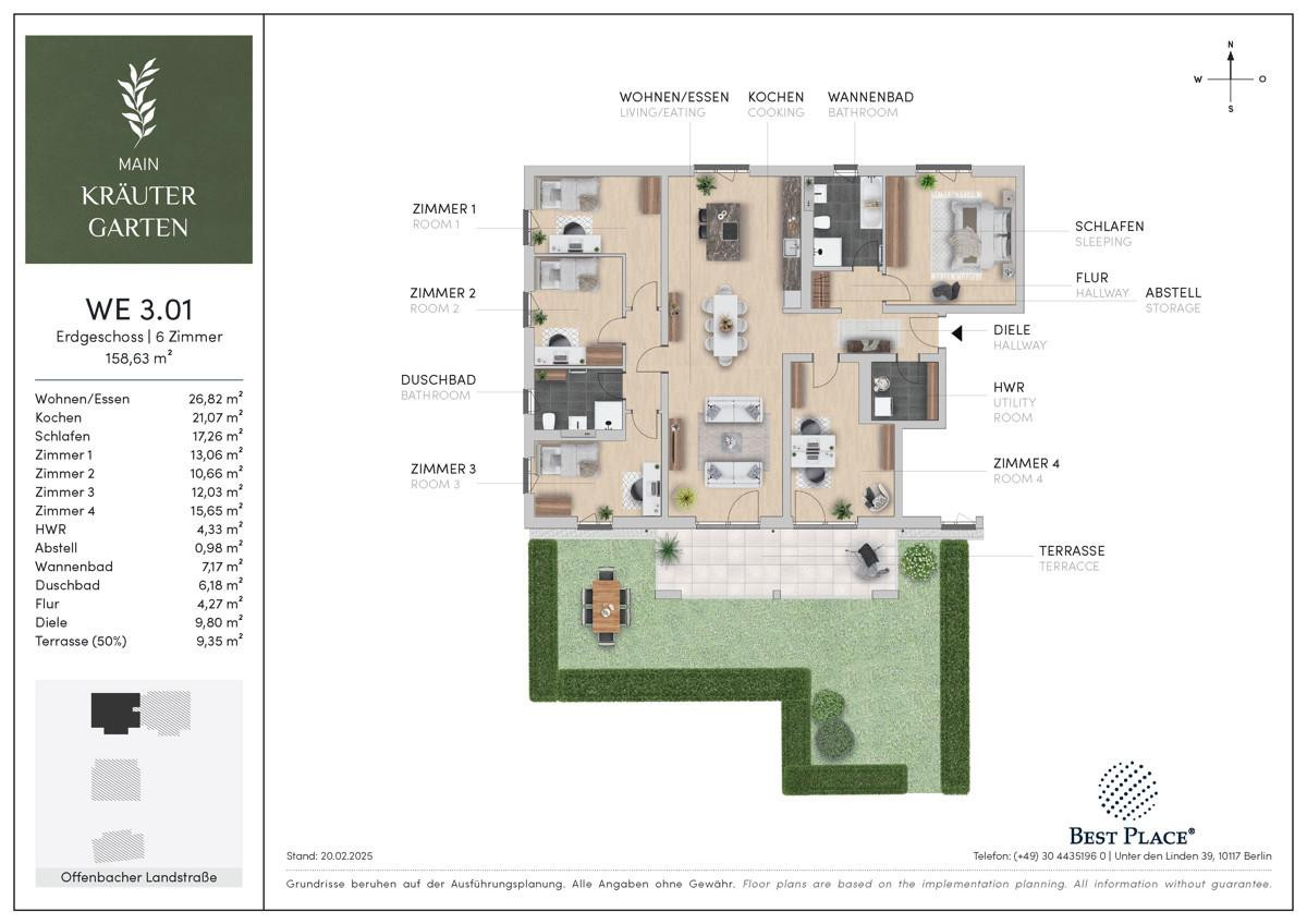 Ein besonderes Highlight ist die weitläufige Süd-Terrasse (ca. 18 m²) mit anschließendem Privatgarten – eine harmonische Erweiterung des Wohnraums und ein Refugium der Ruhe und Sonne.