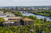 Das Projekt MARINA GARDEN Dresden verdankt seinen Namen seiner außergewöhnlichen Lage. Ein wenig verborgen vor dem Verkehrsfluss der Leipziger Straße und doch direkt am beliebten Elberadweg gelegen, bietet es seinen Bewohnern ein modernes Zuhause. Von der Außen- bis zur Innenausstattung wurden hochwertige und nachhaltige Materialien verwendet. Das Werkstattverfahren für den Bebauungsplan wurde von BARCODE Architects aus Rotterdam mit einem Gebäudeentwurf mit organisch geschwungenen Gebäudeformen gewonnen. Die Umsetzung des Bebauungsplans bis in die architektonische Detailplanung erfolgte durch die Architekten Knerer und Lang. Die einzigartige Architektur spiegelt sich in den Wohnungen wider. So findet man in den vier separaten Gebäuden des Projekts clever gestaltete 1-Zimmer-Wohnungen, aber auch großzügige 4-Zimmer-Wohnungen. Darüber hinaus erfüllt die Bauweise die Bedingungen der KfW55-Förderung und setzt auf nachhaltige Gebäude- und Wohntechnik. Die verschiedenen Wohnungstypen und Wohnungsgrößen richten sich an alle Altersgruppen. Jede Wohnung verfügt über eine Loggia oder Terrasse, die dazu einladen, den fantastischen Ausblick auf die Elbe oder in das öffentlich zugängliche Grün des großen Innenhofs zu genießen. Durch den hohen Glasanteil in der Fassade hinterlässt MARINA GARDEN auch von außen einen einzigartigen Eindruck.
