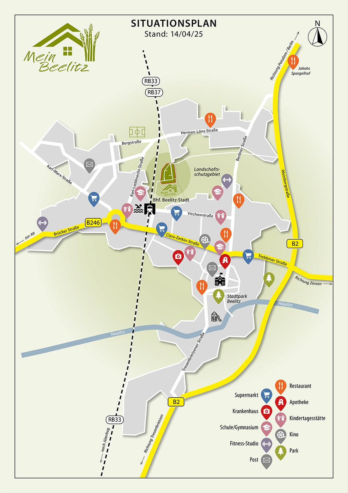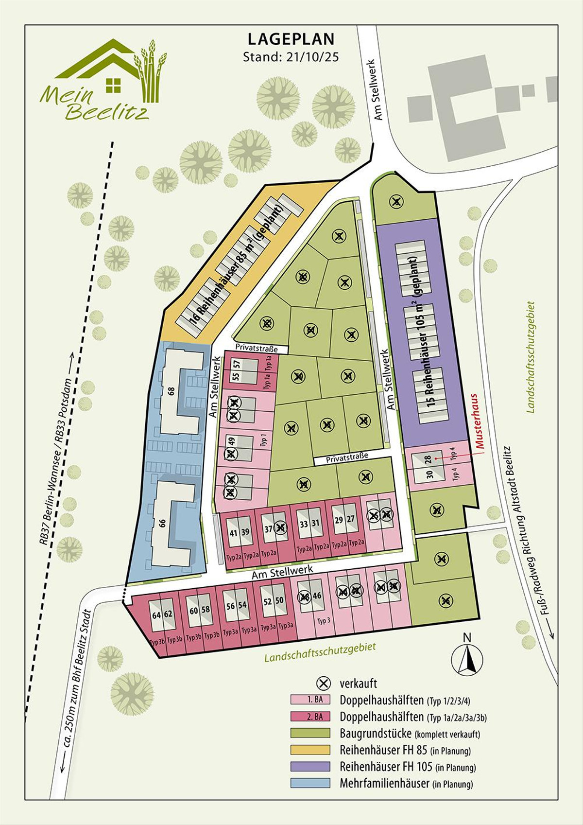 Angrenzend an ein Landschaftsschutzgebiet und fußläufig zum Bahnhof und zur Beelitzer Altstadt entsteht auf ca. 33.000 m² das familienfreundliche Wohngebiet „Mein Beelitz“ mit 34 Doppelhaushälften, 17 Baugrundstücken für freistehende Einfamilienhäuser sowie nach derzeitiger Planung Reihenhäuser und Mehrfamilienhäuser.
