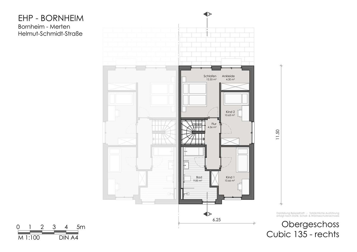 Ihr neues Heim betreten Sie durch den überdachten Eingang und erreichen von dort aus das Erdgeschoss mit Diele, Gäste-WC, Esszimmer mit Küche und das großzügige Wohnzimmer, dem Herzstück des Hauses. Über dieses gelangen Sie zur Terrasse und in den großen Garten – der perfekte Ort für Grillabende mit Ihren Liebsten oder ein Familienfrühstück am Sonntagmorgen. In der oberen Etage befinden sich drei Schlafzimmer – zwei Kinderzimmer sowie das Elternschlafzimmer mit begehbarer Ankleide – und ein großes Tageslicht-Badezimmer mit Badewanne und Dusche. Eine Etage höher findet sich das geräumige und ausgebaute Dachgeschoss, das einen idealen Rückzugsort für beispielsweise das Hobby oder das Arbeiten von zu Hause bietet.
