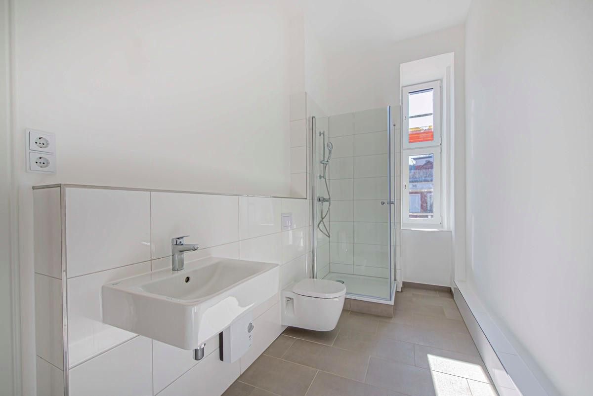 • Modernes Tageslichtbad mit Dusche und Handtuchheizkörper