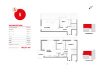 Die Wohnflächen liegen zwischen ca. 48 m² und ca. 120 m². In beiden Häusern sind die Wohnungen im 2. Obergeschoss über 2 Ebenen verteilt (Maisonette). Ein Unterschied der beiden Häuser liegt bei der Energieeffizienz – Haus A ist KfW-Effizienzhaus 55 und Haus B KfW-Effizienzhaus 40.
