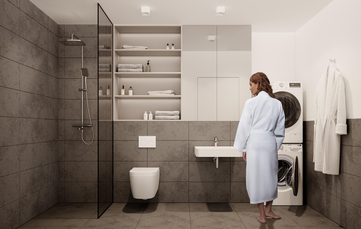 Unsere Planer sind verliebt in architektonisch anspruchsvolle, aber zugleich praktische Dinge. Genau die Kleinigkeiten, die dann das Gewöhnliche zum Außergewöhnlichen machen. In MY CHOICE ECHING gehören dazu unter anderem Hauswirtschaftsräume in vielen Wohnungen, Plätze für Lastenräder in der Nähe der Hauseingänge sowie eine Reparaturstele und Elektroladestationen für Fahrräder. Viele Dinge, die im Alltag das Leben erleichtern.