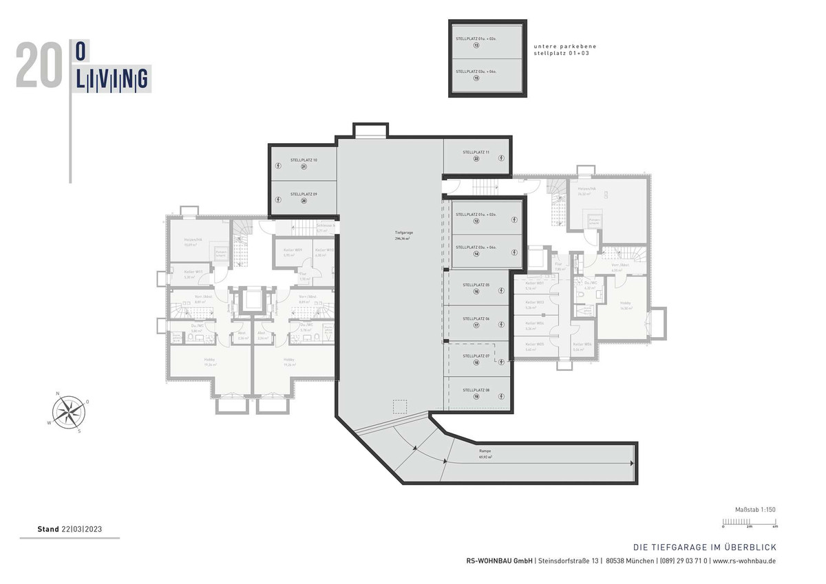 Profitieren Sie JETZT von unserer SONDERAKTION "50.000 EUR Nachlass"! --- Hochwertig und mit viel Feingefühl haben wir zwei attraktive Mehrfamilienhäuser (mit Aufzug) in einem sehr ruhigen Wohngebiet in Forstenried-Maxhof, der Oberbrunner Straße 20 errichtet. Die beiden Häuser wurden nach dem energiesparenden „Standard Effizienzhaus 55“ gebaut und gliedern sich in Haus A mit sechs Parteien und in Haus B mit fünf Parteien auf. Die Wohneinheiten sind auf alle individuellen Bedürfnisse und Wünsche abgestimmt – für Singles, Paare und Familien - von ca. 69 m² bis zur Wohnung mit ca. 110 m² Wohnfläche. Sie bestechen durch ihre gut durchdachte Raumaufteilung und anspruchsvolle Ausstattung, damit ein besonderes Wohlfühlambiente mit hohem Wohnkomfort geschaffen wird. Die offen gestalteten Wohn-/ Ess-/ Küchenbereiche rufen eine entsprechende Großzügigkeit hervor. Der Einbau der bodentiefen Fenstertür-Elemente und großen Dachflächenfenster gewährleisten ein Maximum an Lichteinfall. Die geräumigen Gartenwohnungen erhielten jeweils eigene, großzügige Gartenanteile. Drei der EG-Wohnungen umfassen zusätzliche Souterrainbereiche, die taghell und in Wohnraumqualität ausgebaut sind. Die Terrassen und Balkone sind südwestlich ausgerichtet und laden zum schönen Ausklang des Tages ein. Eine Tiefgarage komplettiert unser überaus ansprechendes Neubauobjekt.