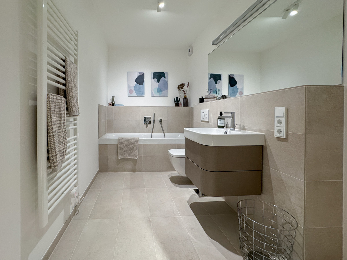 - Zeitgemäße Design-Bäder mit Armaturen von hansgrohe und elektrisch betriebenem Handtuchheizkörper