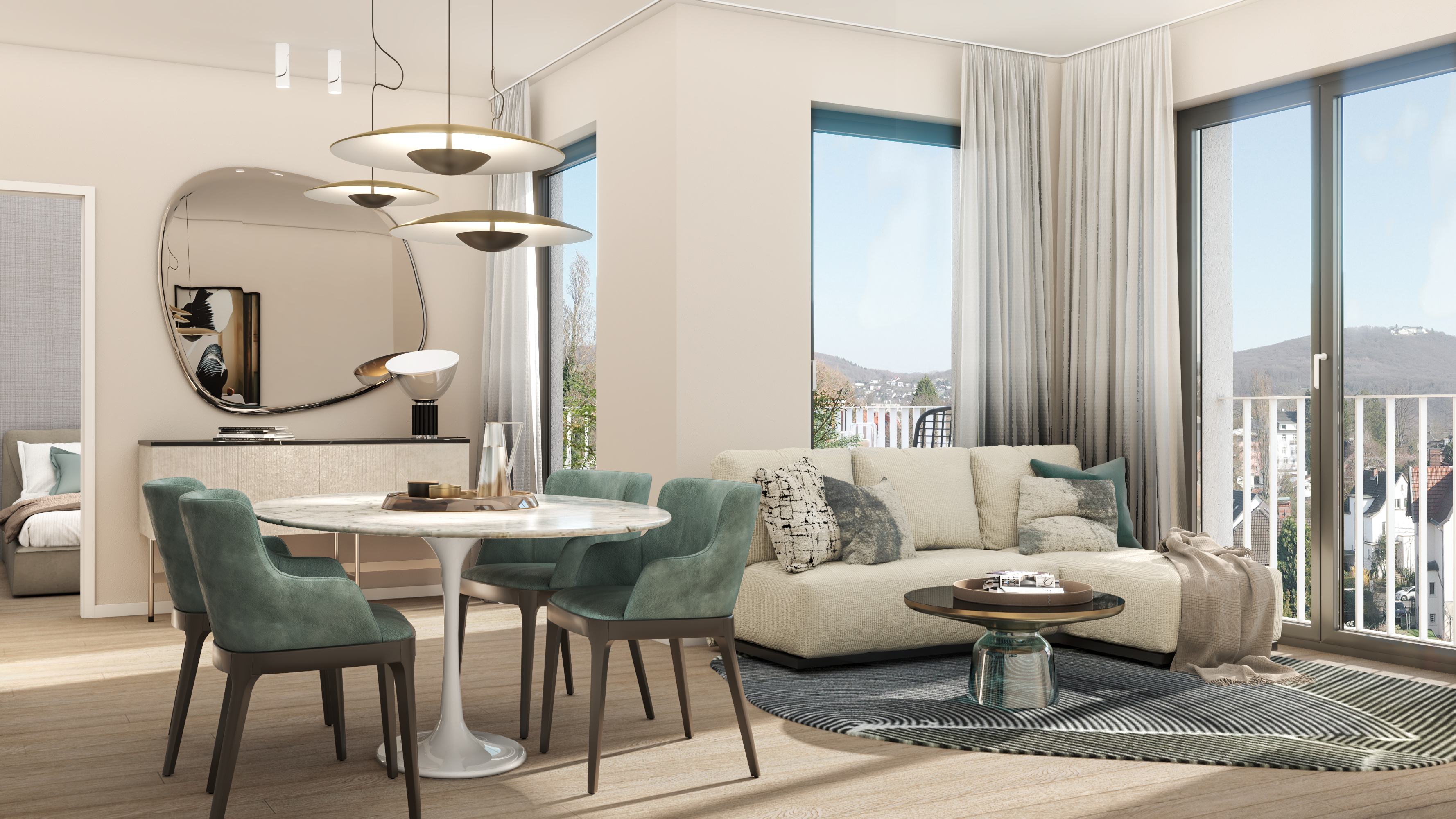Wer im Bad Godesberger Villenviertel leben möchte, der sucht das Besondere – und hat nun eine Option mehr, es zu finden. Die ein bis vier Zimmer großen Wohnungen in PANDION PRINZZ und die beiden mehrgeschossigen Townhouses mit 5 Zimmern eröffnen die Möglichkeit, unterschiedlichste Vorstellungen vom modernen Wohnen im Villenviertel zu realisieren.