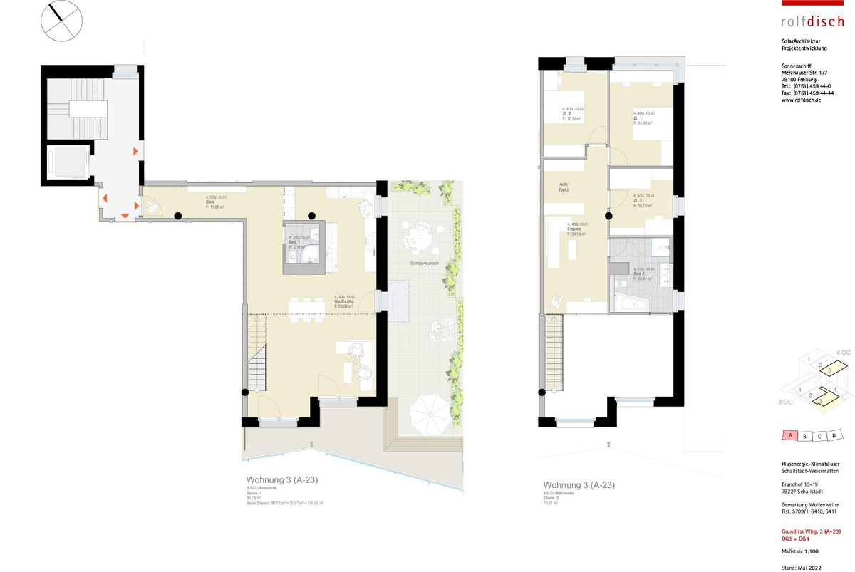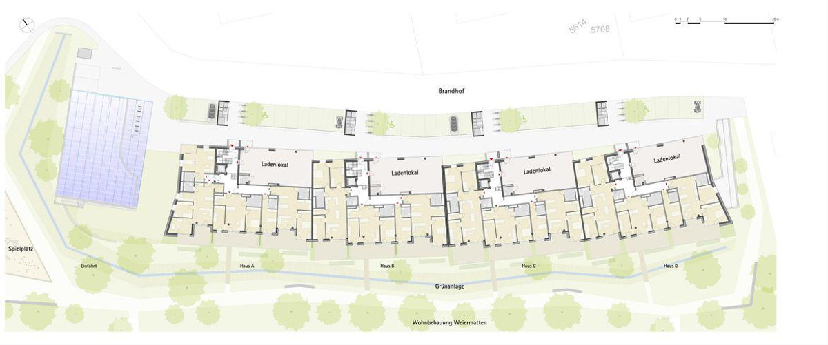 Mit 83 Wohnungen von 25 bis 170 m² und 4 Ladengeschäften wurden 2023 im neuen Zentrum Schallstadts die Plusenergie-Klimahäuser fertiggestellt. Die Gebäudezeile ist in vier Gebäudeteile gegliedert und verfügt über moderne, lichtdurchflutete 1- bis 5-Zimmer Wohnungen mit Gartenterrasse oder großem Balkon in Südwest-Ausrichtung, über exklusive Penthäuser mit Dachgärten.