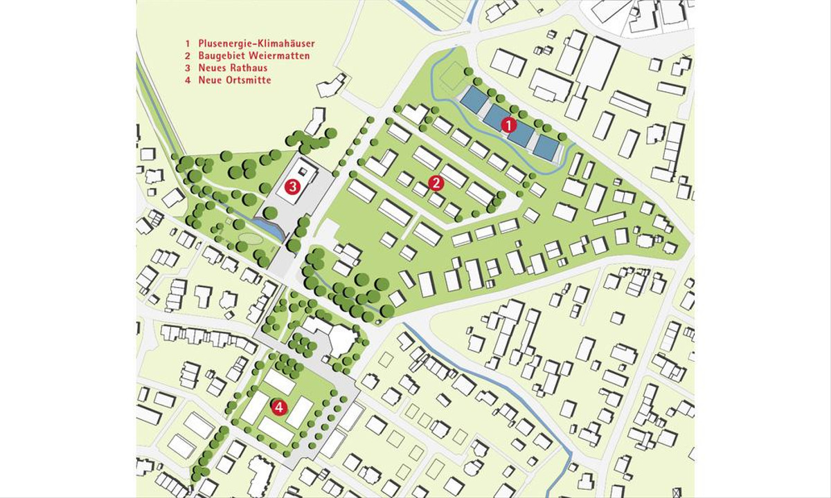 Die Klimahäuser sind Teil des neu entstehenden Ortszentrums, mit dem neuen Rathaus, der neuen Ortsmitte und dem Baugebiet Weiermatten. Schallstadt grenzt im Südosten direkt an Freiburg an. Zwischen Schönberg und Tuniberg, zwischen Rhein und Schwarzwald bieten sich vielfältige Naherholungsmöglichkeiten.