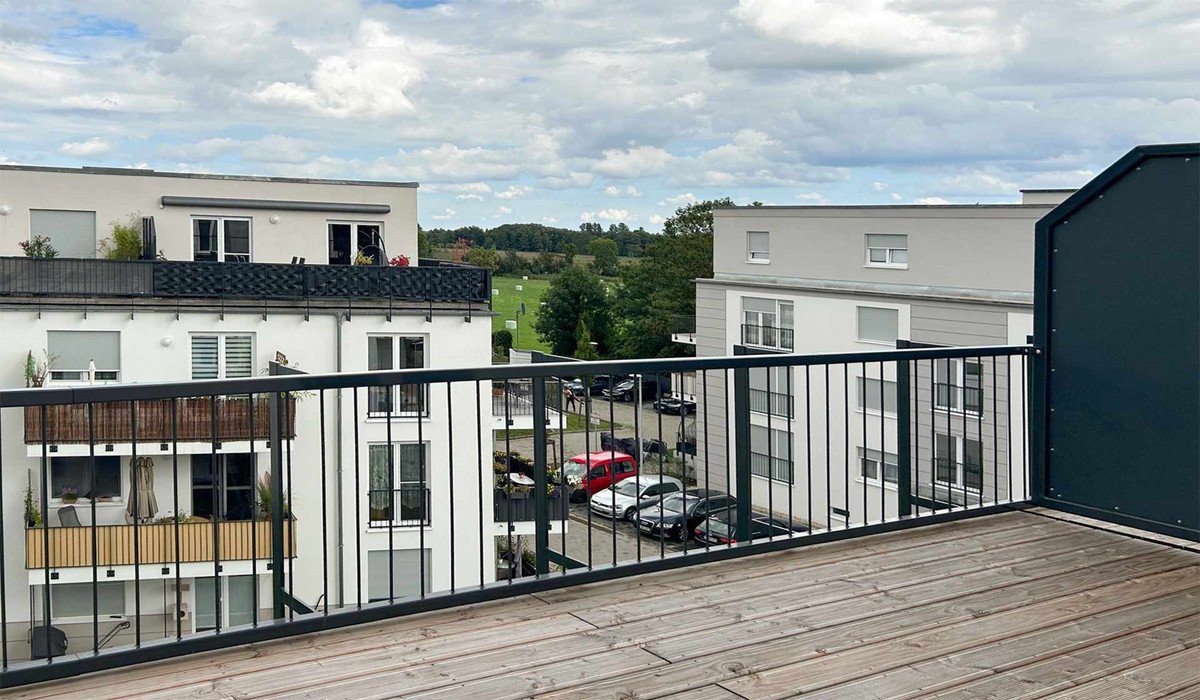 Beim Betreten der Wohnung gelangen Sie in einen einladenden Eingangsbereich. Links finden Sie das großzügige Schlafzimmer, das Platz für ein gemütliches Bett und einen Kleiderschrank bietet. Ein weiteres Zimmer bietet Ruhe und Entspannung. Weiter geradeaus öffnet sich der lichtdurchflutete Wohnbereich mit offener Küche, perfekt für gesellige Abende und gemeinsames Kochen. Große bodentiefe Fenster bringen viel Tageslicht herein und bieten Zugang zur beeindruckenden Dachterrasse, die zum Entspannen einlädt. Ein modernes Badezimmer mit bodengleicher Dusche und Badewanne komplettiert diese attraktive Wohnung. Mehr Platz für Ihre Sachen bietet ein eigener Keller, der bequem mit dem Aufzug zu erreichen ist.