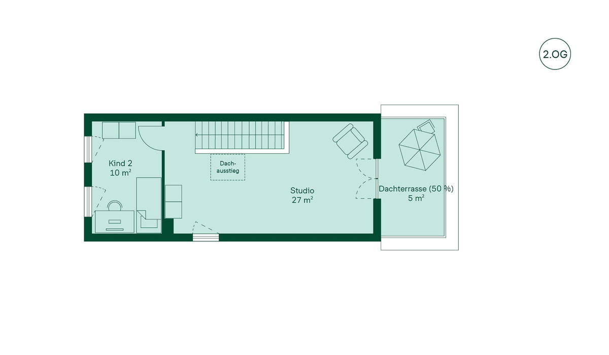 Willkommen in Ihrem neuen Zuhause. Schon der Eingangsbereich mit Gäste-WC und praktischem Stauraum sorgt für einen angenehmen Empfang. Die offene Küche lädt zu gemeinsamen Momenten ein, während der Wohnbereich fließend in die Terrasse übergeht, ideal für den Start in den Tag oder entspannte Abende. Im ersten Obergeschoss erwarten Sie zwei ruhige Rückzugsorte sowie ein helles Badezimmer. Das zweite Obergeschoss schenkt mit Studio, Kinderzimmer und Dachterrasse zusätzlichen Freiraum, perfekt für Ihre Wohnideen. Im Untergeschoss finden Sie viel Platz für Vorräte oder Hobbies oder die durchdacht und komfortabel.