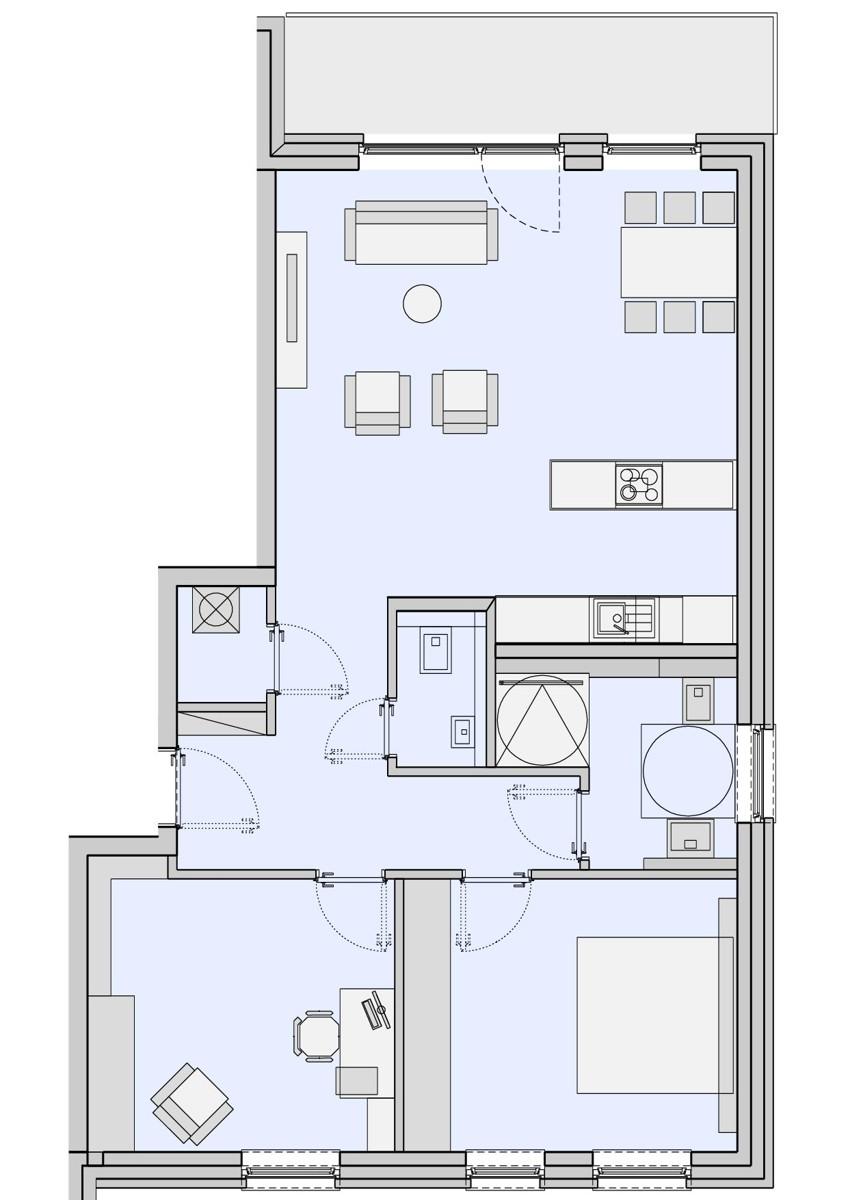Die Eigentumswohnungen bieten eine Wohnfläche von bis zu 110 m² und bestehen aus einem oder sogar zwei Schlafzimmern und einem Wohnzimmer. Sie überzeugen mit dem offenen und modernen Wohnkonzept, das für ein großzügiges Raumgefühl und eine angenehme Wohnatmosphäre sorgt. Die offene Gestaltung ermöglicht eine optimale Nutzung des vorhandenen Platzes und schafft eine harmonische Verbindung zwischen dem Wohn-, Koch- und Essbereich. Zudem sind die Bäder in jeder Wohnung mit einer Dusche ausgestattet. Die 3-Zimmer Wohnungen enthalten zusätzlich ein Gäste-WC sowie einen Abstellraum mit Waschmaschinen-Anschluss.