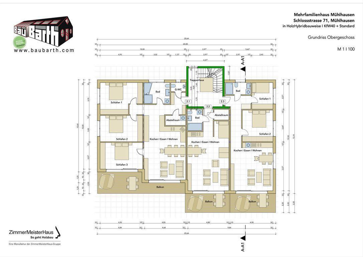 Im Ober-/ und Dachgeschoss befinden sich eine Zweizimmer-, eine Dreizimmer und eine Fünfzimmerwohnung.