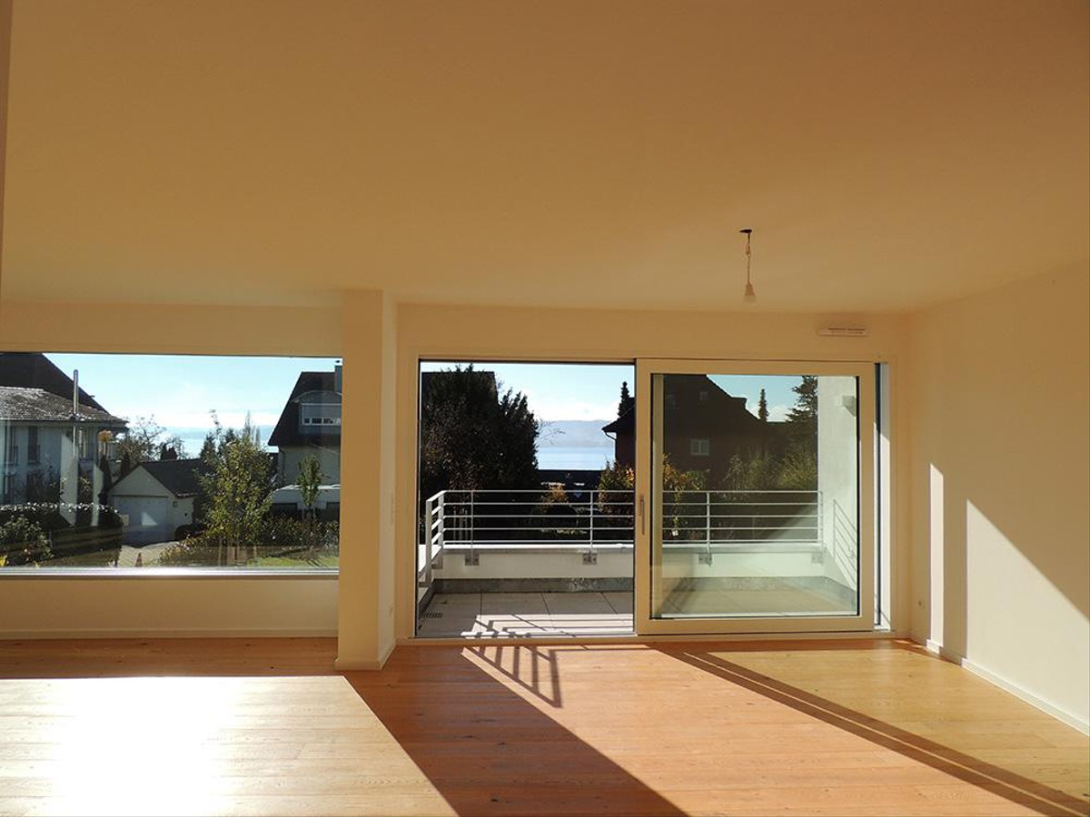 Hier holen wir für Sie den Balkongenuss direkt ins Wohnzimmer. Mit dem Blick auf den See können Sie die Ruhe genießen.
