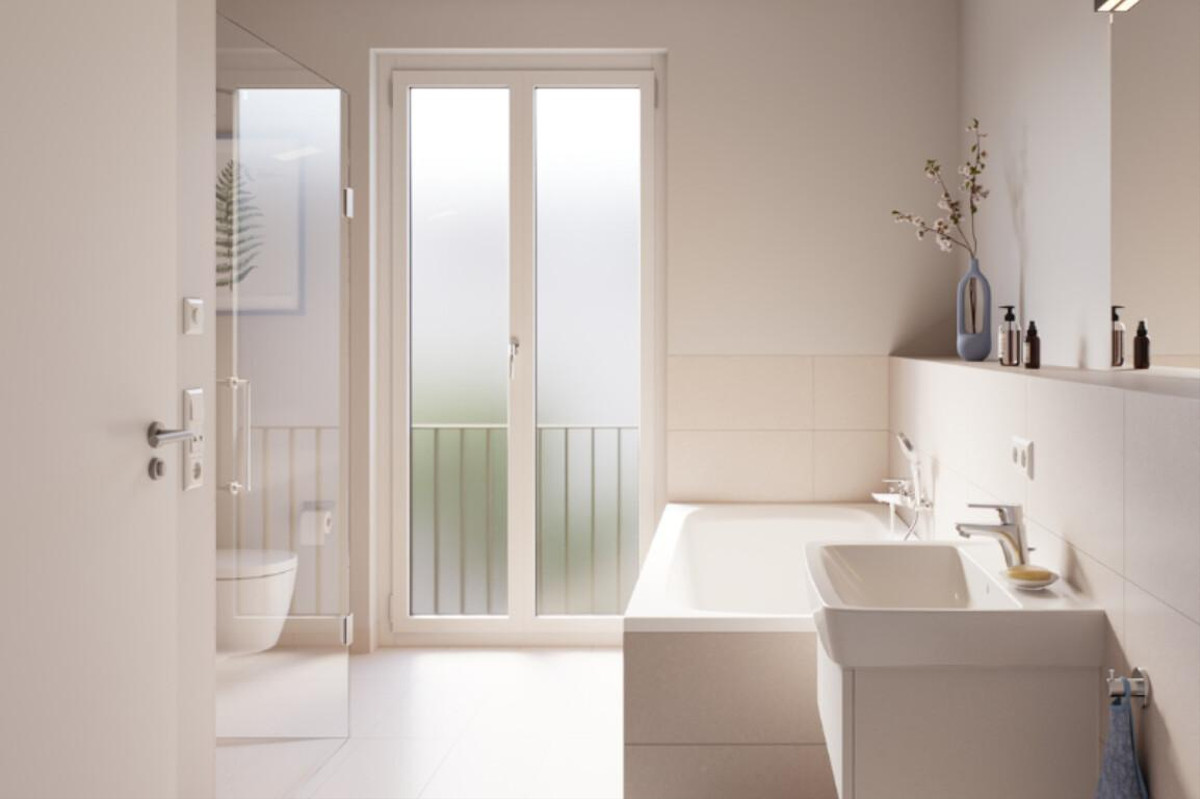 Die Häuser werden in massiver Bauweise mit Kalksandsteinmauerwerk und einem Wärmedämmverbundsystem aus Mineralwolle errichtet. Die Energieversorgung erfolgt über Fernwärme aus ca. 70% erneuerbaren Energien in Kombination mit einer Photovoltaikanlage auf den Dachflächen. Der KfW-Effizienzhausstandard 40 EE garantiert höchste energetische Qualität und nachhaltige Betriebskostenersparnis – heute und für kommende Generationen.