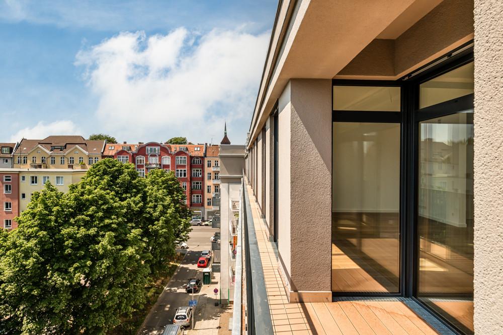 Alle Wohnungen besitzen sonnenverwöhnte Außenflächen mit traumhaftem Blick über Berlin: Loggien, umlaufende begehbare Balkone und Aufdachterrassen. Auch die Innenausstattung der Penthouse-Wohnungen entspricht diesem hohen Niveau. Hochwertige Holz-Aluminium-Isolierglas-Fenster und Echtholzparkett schaffen gekonnt einen eleganten Rahmen für Ihren persönlichen Einrichtungsstil.