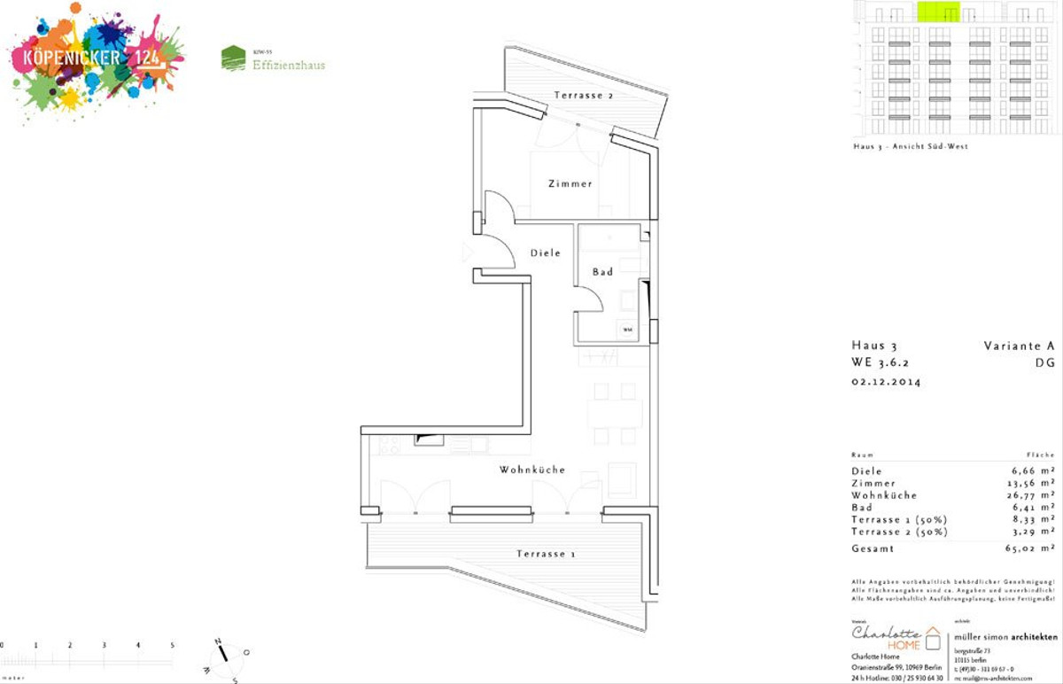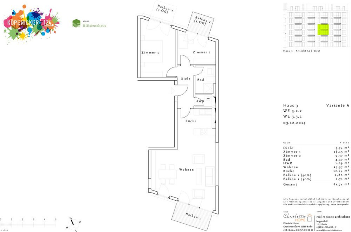 Das Neubauprojekt vereint 3 Baukörper zu einem abgeschlossenen Quartier, das nur für die Bewohner zugänglich ist. Bis Anfang 2016 entstehen 84 hochwertige Neubauwohnungen, 45 Tiefgaragenstellplätze und eine Ladeneinheit nur etwas mehr als 200 m von der Spree gelegen.