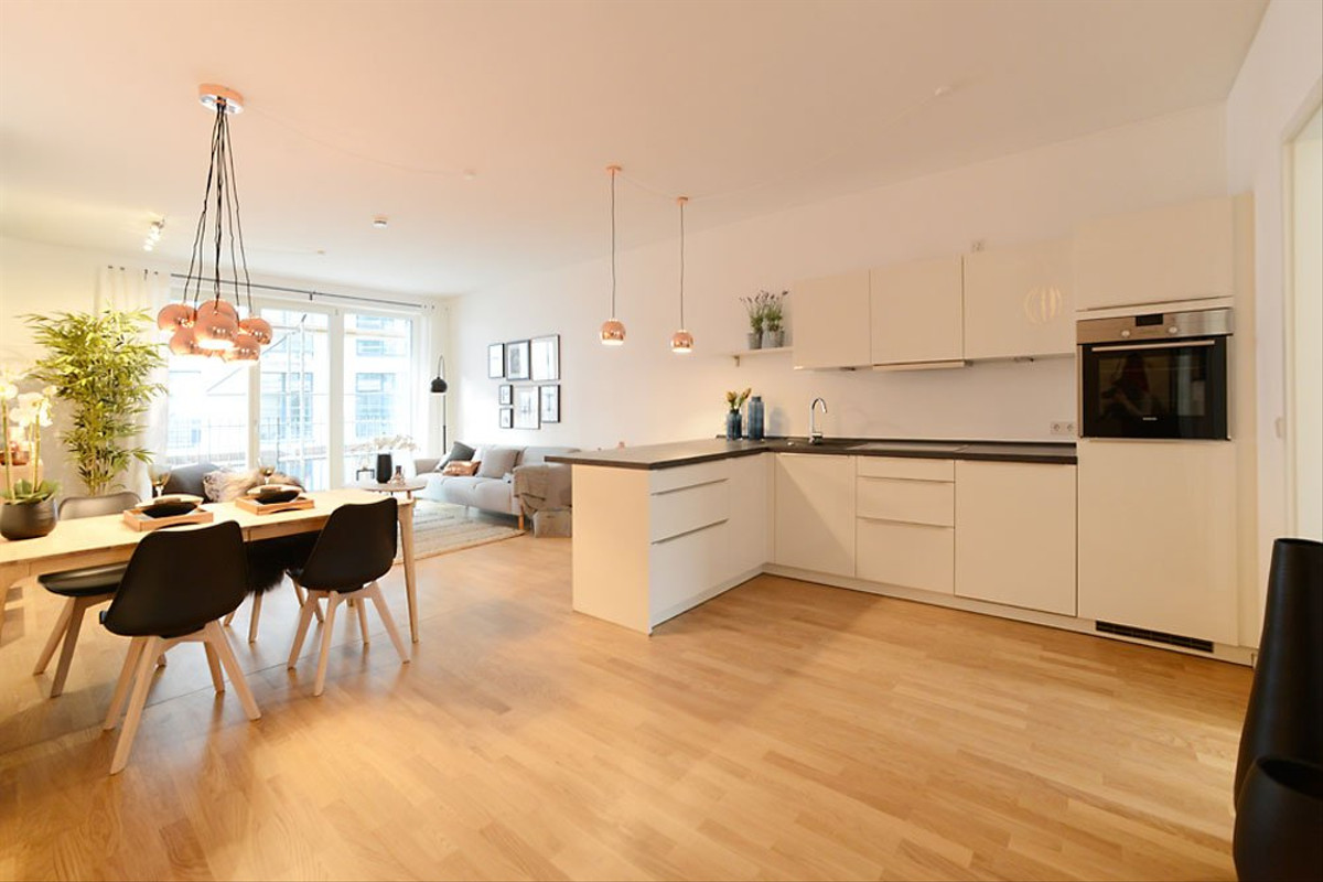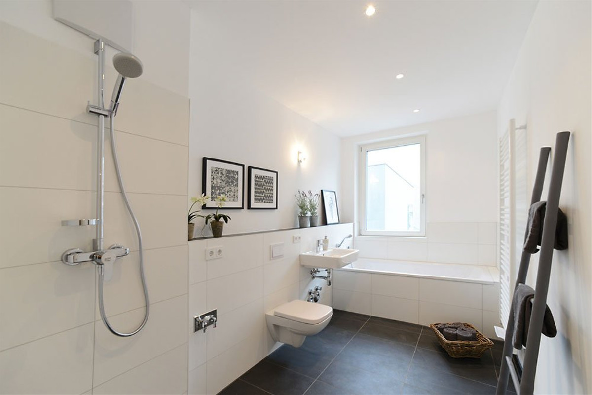 Die moderne Architektur bietet bodentiefe Fenster mit Dreifachverglasung,Fußbodenheizung, Echtholz-Parkettböden sowie eine gehobene Badausstattung von Keramag und Hansgrohe. Optional kann ein Tiefgaragenstellplatz ab 29.000 Euroerworben werden.