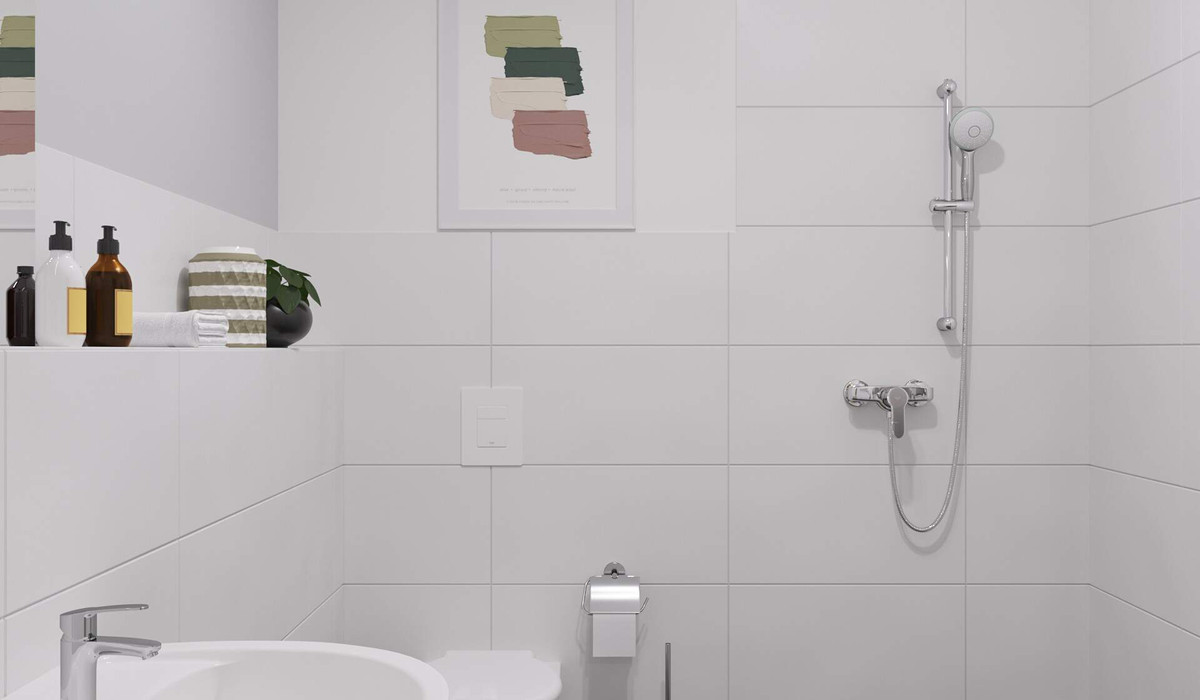 Willkommen in Ihrer neuen Wohnung im ersten Obergeschoss: Der Flur bietet Platz für Ihre Garderobe und führt Sie unter anderem in den geräumigen Wohn- und Essbereich mit offener Küche. Von hier aus geht es auf den Balkon, ideal für gesellige Abende und zum Entspannen an sonnigen Tagen. Insgesamt zwei Schlafzimmer schaffen Flexibilität für Kind oder Büro und die zwei Bäder sorgen mit einer Badewanne und einer Dusche für Komfort. Ein Abstellraum ergänzt den Stauraum im Keller.