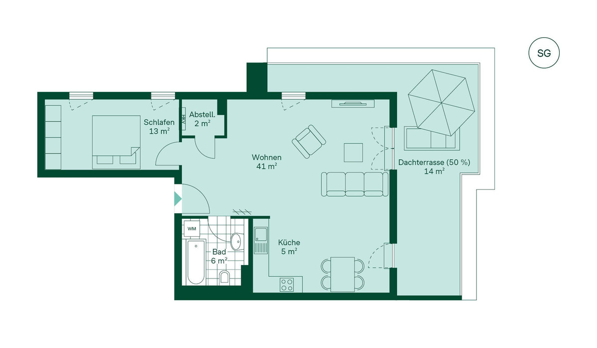 Willkommen in Ihrer neuen Wohnung im Staffelgeschoss: Das Herzstück der Wohnung ist der großzügige Wohn- und Essbereich mit offener Küche. Von hier aus geht es auf die Dachterrasse, ideal für gesellige Abende und zum Entspannen an sonnigen Tagen. Das Schlafzimmer dient als Ort der Ruhe und das Badezimmer beinhaltet eine Badewanne. Ein Abstellraum ergänzt den Stauraum im Keller.