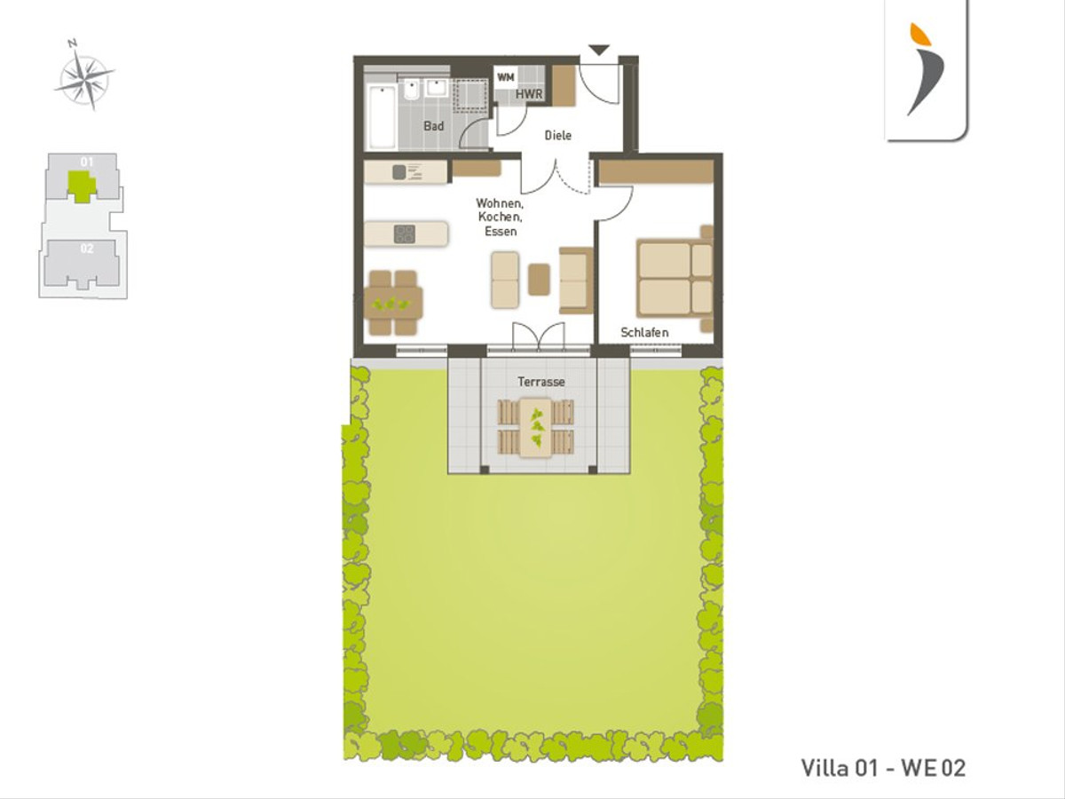 Freuen Sie sich auf das Leben in hellen, elegant ausgestatteten Innenräumen und blühen Sie auf mit dem schönen Gefühl, in wenigen Schritten in Ihre grüne Oase direkt vor der Terrassentür einzutauchen.