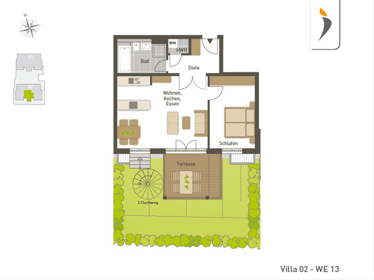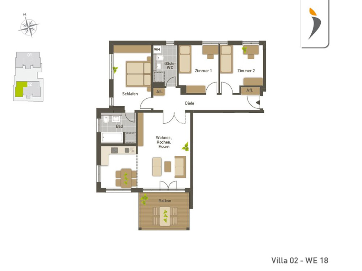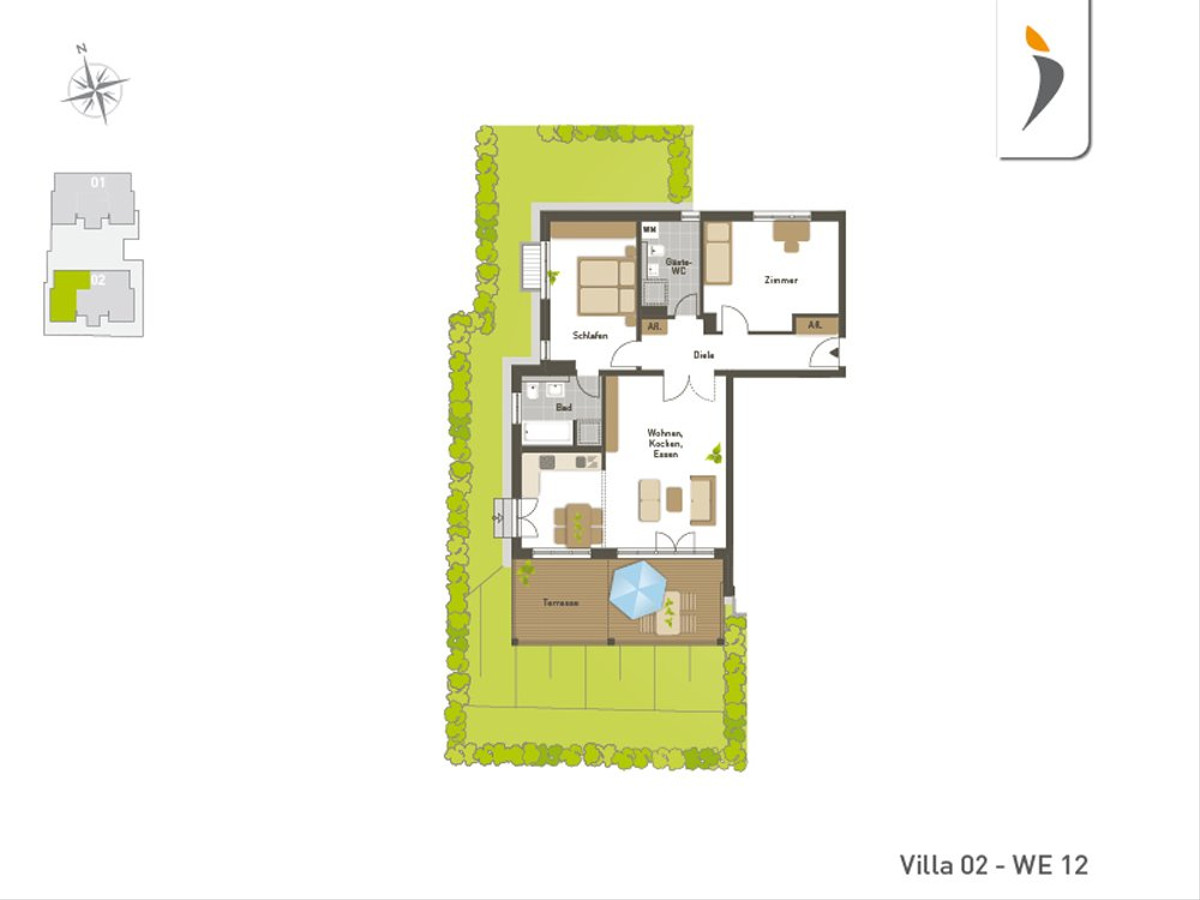 - Großzügige Freiluft-Oasen in jeder Wohnung: Garten-, Dachterrassen und Balkone