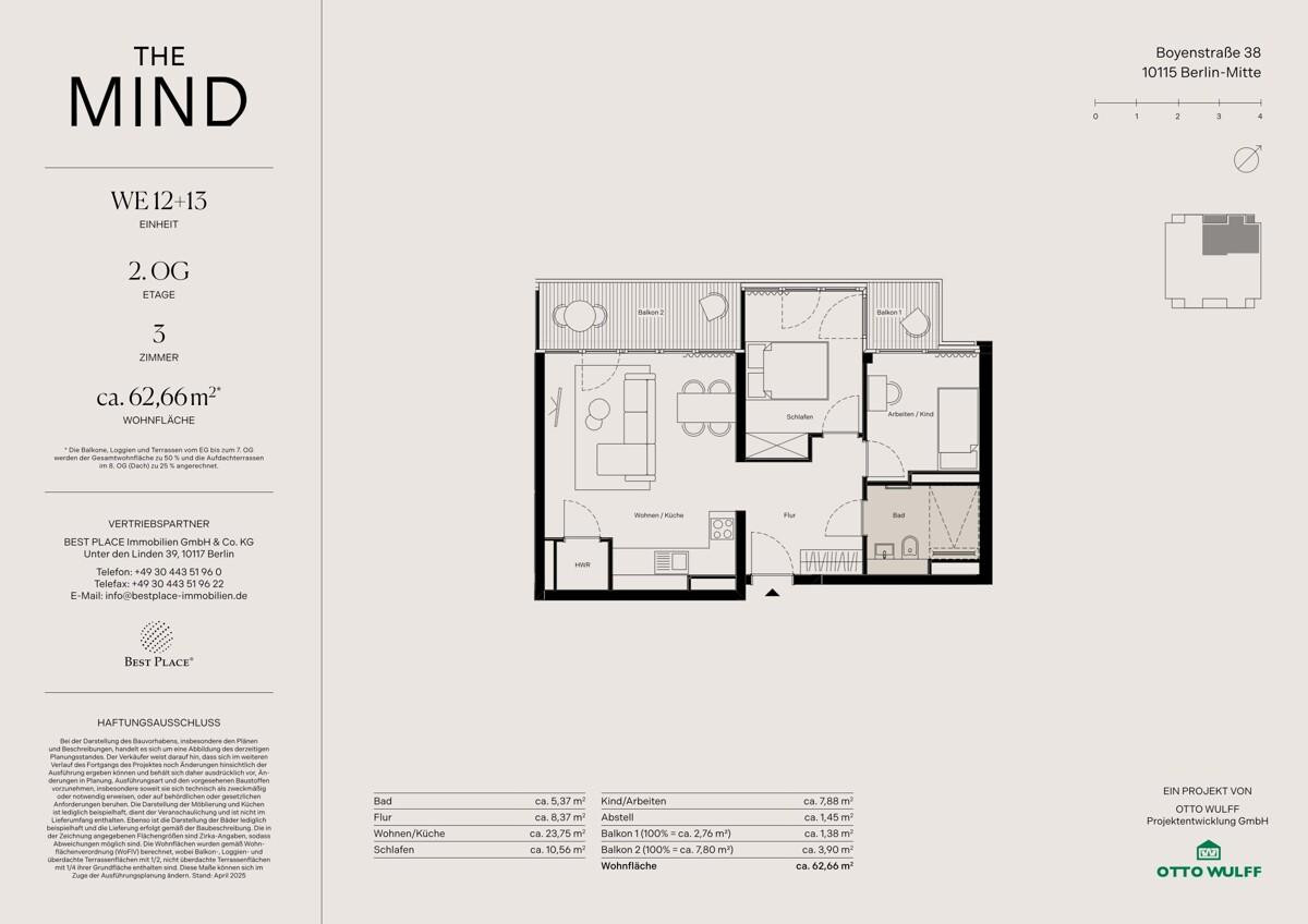Auf dem letzten unbebauten Grundstück an der Boyenstraße in Berlin-Mitte entsteht mit THE MIND ein edel schimmerndes Architektur-Highlight, welches ein exklusives Ambiente mit innovativer Gebäudetechnik, digitalen Features für die Bewohner und Nachhaltigkeit verbindet. Die Standards wie Fußbodenheizung, Eichen-Parkett und Handtuchheizkörper werden ergänzt von attraktiven Raumhöhen von bis zu ca. 2,96 m, eleganten, bodentiefen Aluminiumfenstern mit Sonnenschutz, kontrollierter Wohnraumlüftung über eine zentrale Abluftanlage, Balkonen und Terrassen sowie dem gärtnerisch gestalteten Gemeinschaftsgarten mit Hochbeeten, Apfelbäumen und Sitzgelegenheiten – eine grüne Oase mitten in der Stadt. Darüber hinaus sorgen der Personenaufzug, ein Waschmaschinenraum im Untergeschoss und ein digitaler Concierge für Komfort im Alltag. Ob Selbstnutzer oder Kapitalanleger, THE MIND ist ein absolutes Unikat in Berlin mit hervorragender Wertperspektive.