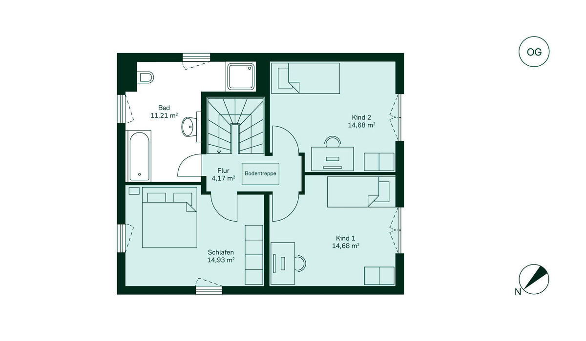 Willkommen in Ihrem neuen Zuhause. Im Erdgeschoss betreten Sie die Diele, die Sie zur offenen Wohnküche führt. Hier können Sie gemeinsam kochen und entspannen. Das Wohnzimmer bietet viel Raum für gemütliche Abende. Nebenan befindet sich ein Gästezimmer und ein praktisches Gäste-WC. Vom Wohnzimmer aus gelangen Sie auf die gepflasterte Gartenterrasse. Im Obergeschoss erwarten Sie drei weitere Zimmer, ideal für Schlaf- und Kinderzimmer. Ein Familienbad rundet das Angebot ab.