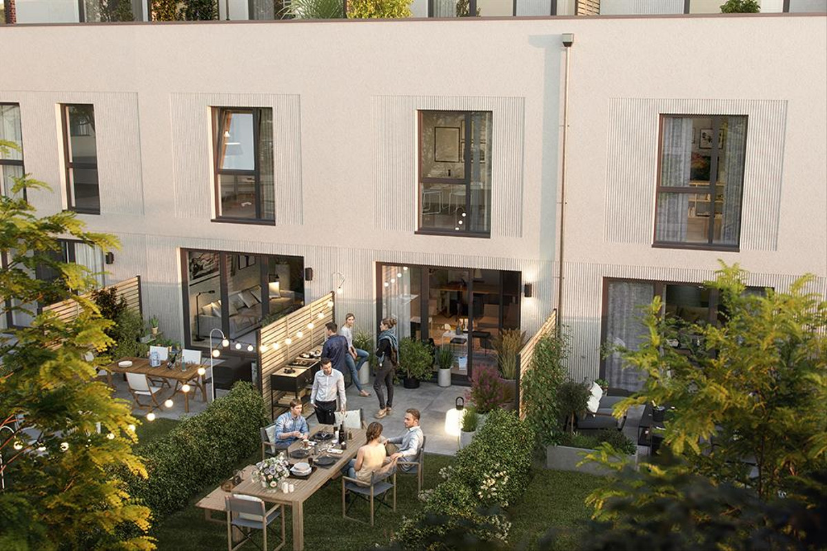 Ein Wohnzimmer mit Garten – das Erdgeschoss bietet mehr als die eigenen vier Wände. Gleichzeitig sorgen Sichtschutzwände zu den Nachbargärten und Rollläden im Erdgeschoss für Ihre Privatsphäre. Die Dachterrassen sorgen für Ruhe und Zurückgezogenheit unter freiem Himmel.