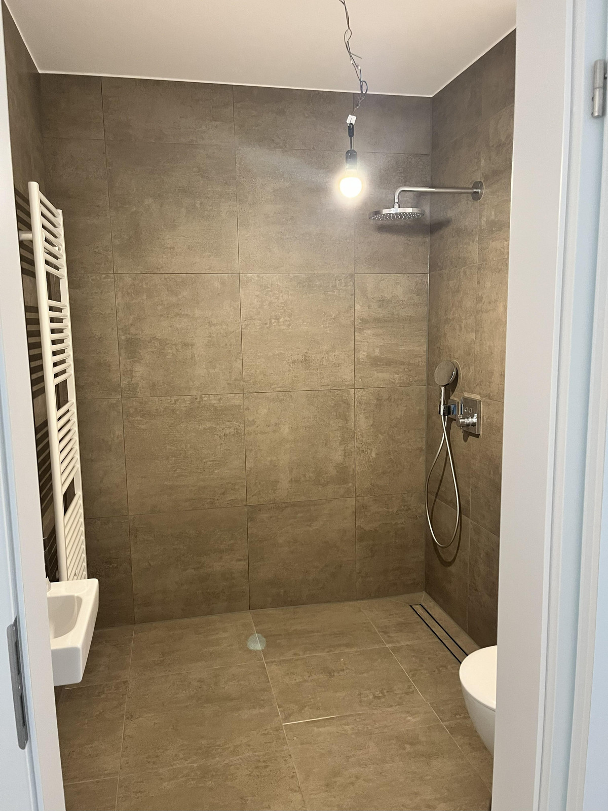 - DUSCHEN: Bodengleich gefliest mit Ablaufrinne