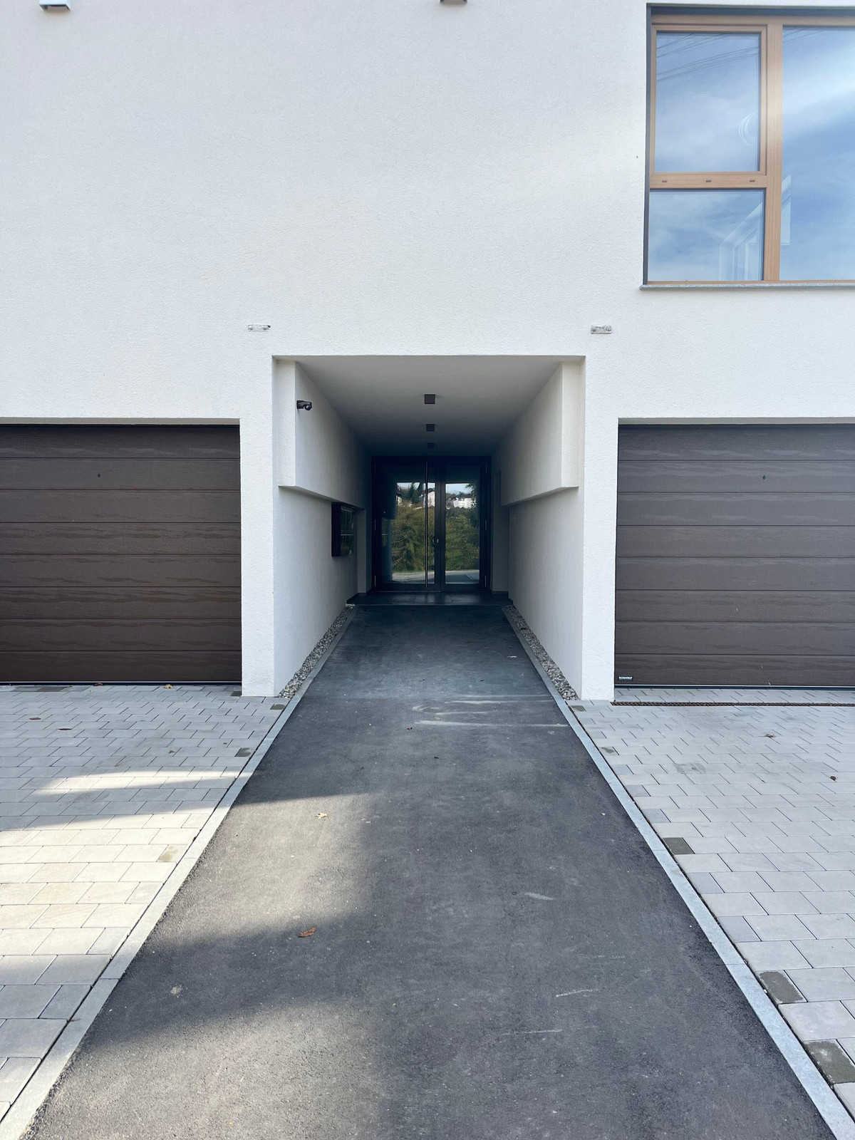 - Den Wohnungen ist ein Garagenstellplatz zugeordnet. Direkt davor befindet sich ein weiterer, jedoch nicht überdachter Kfz-Stellplatz. Der Garagen erhalten einen Deckenauslass sowie eine Steckdose.