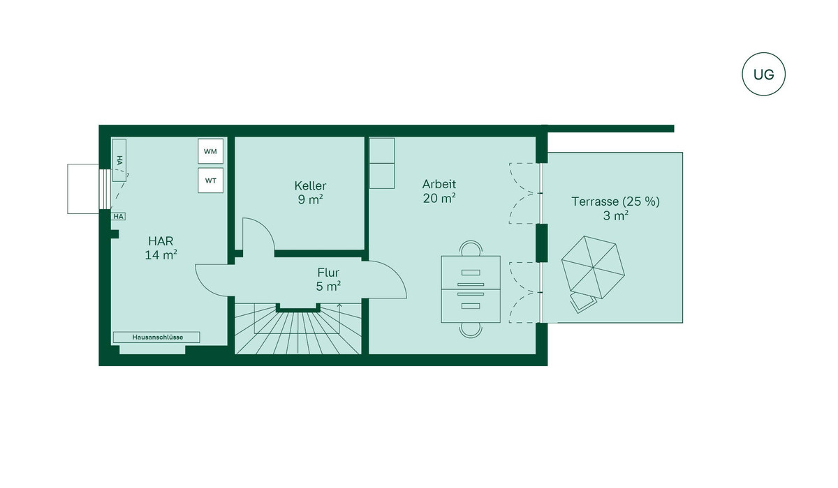 - sehr helles Gäste- oder Arbeitszimmer im Untergeschoss