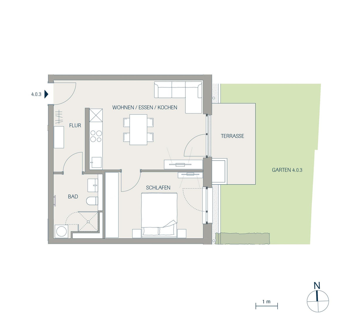 • Wohnungen mit Balkon oder Terrasse mit Privatgarten (Sondernutzungsrecht)