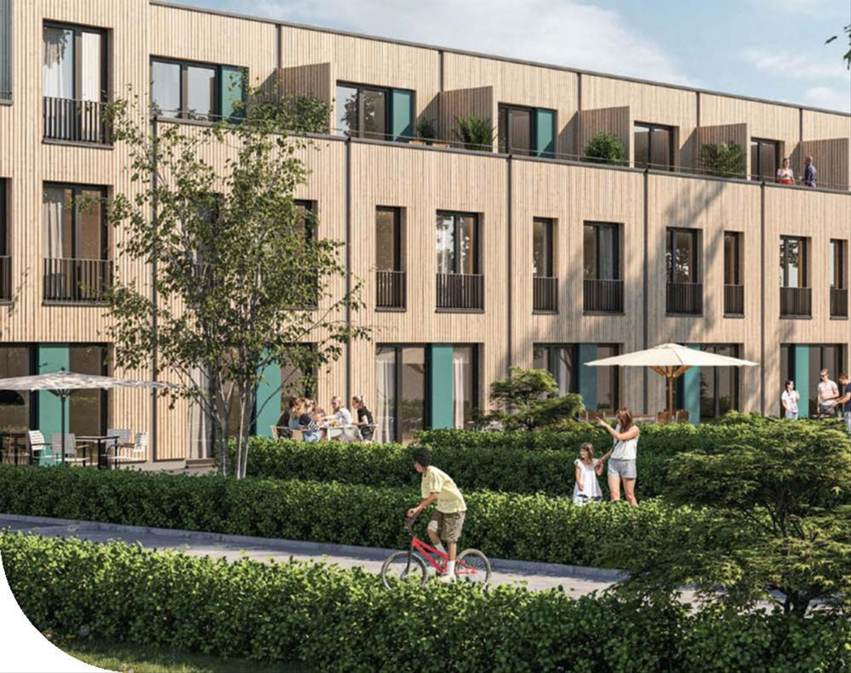 Hier entstehen moderne Townhouses in klimaschonender und energieeffizienter Massiv-Holzbauweise mit regenerativer Heizenergie.