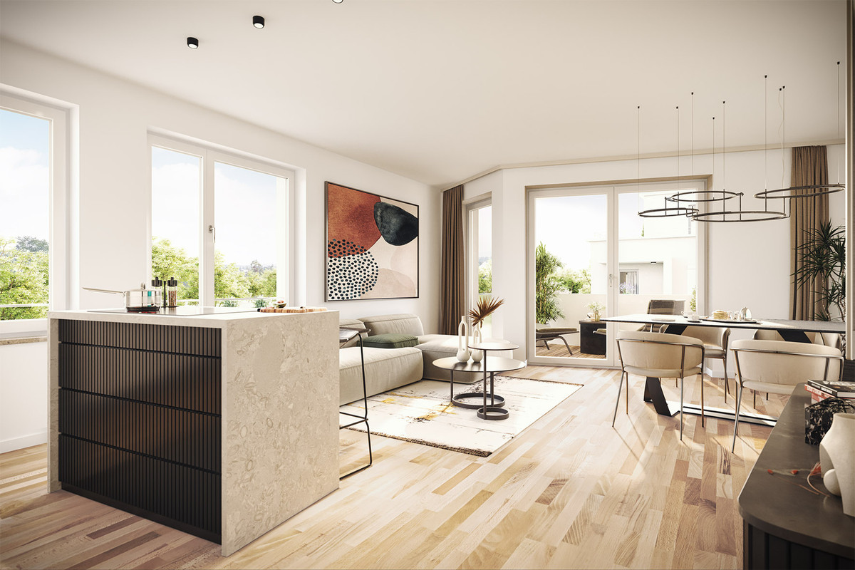 Die Wohnungen überzeugen durch durchdachte Grundrisse, großzügige Balkone, Dachterrassen oder private Gärten – und sind kurzfristig bezugsfertig.